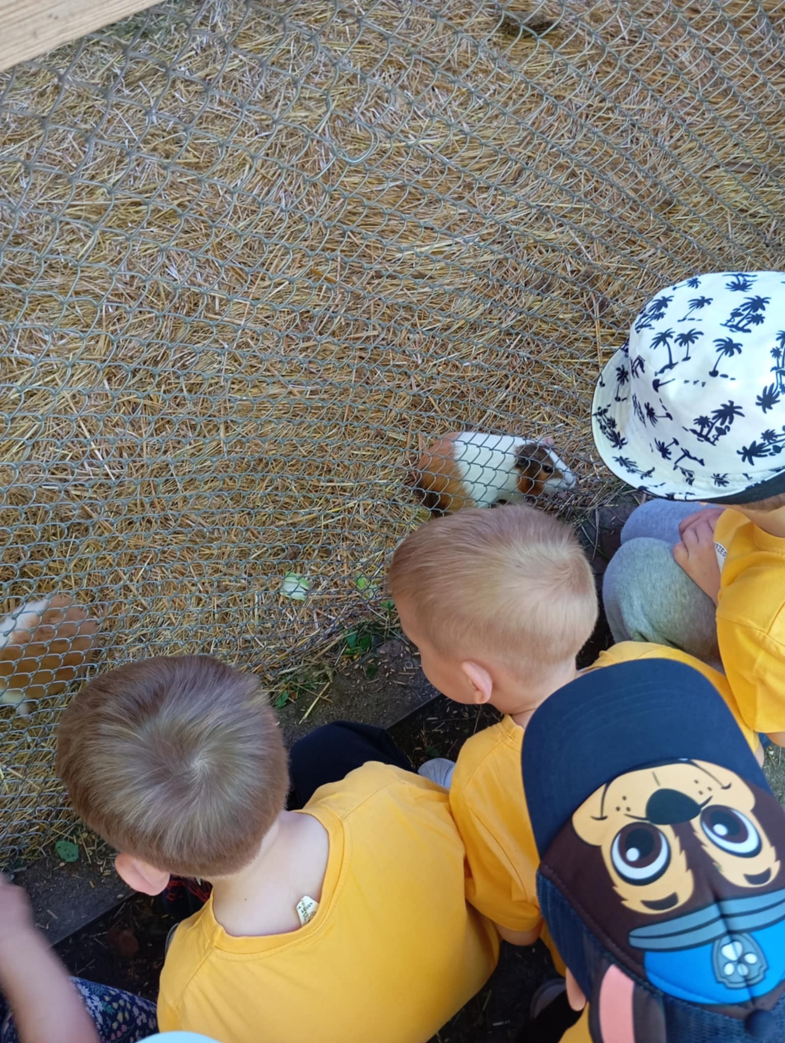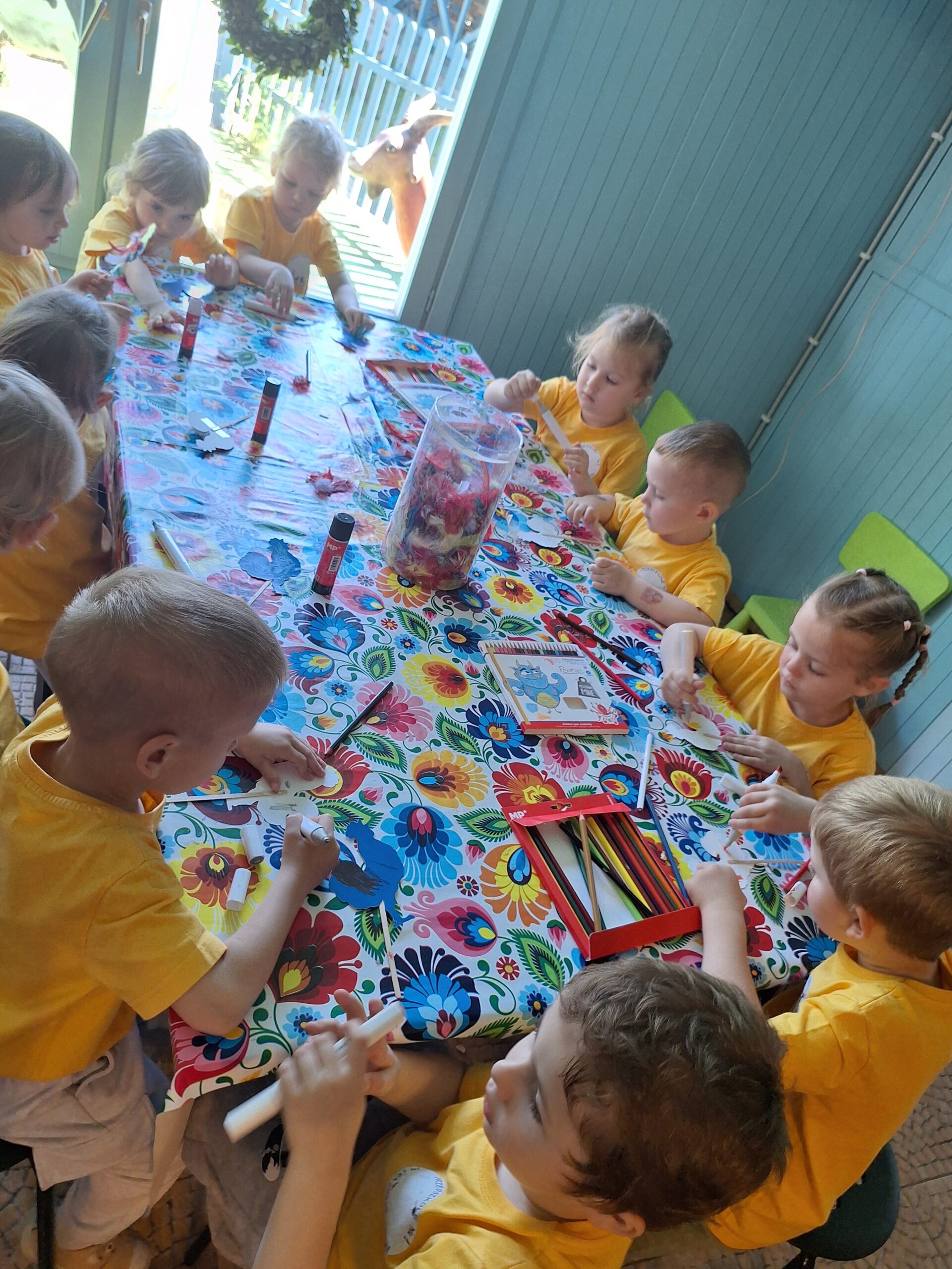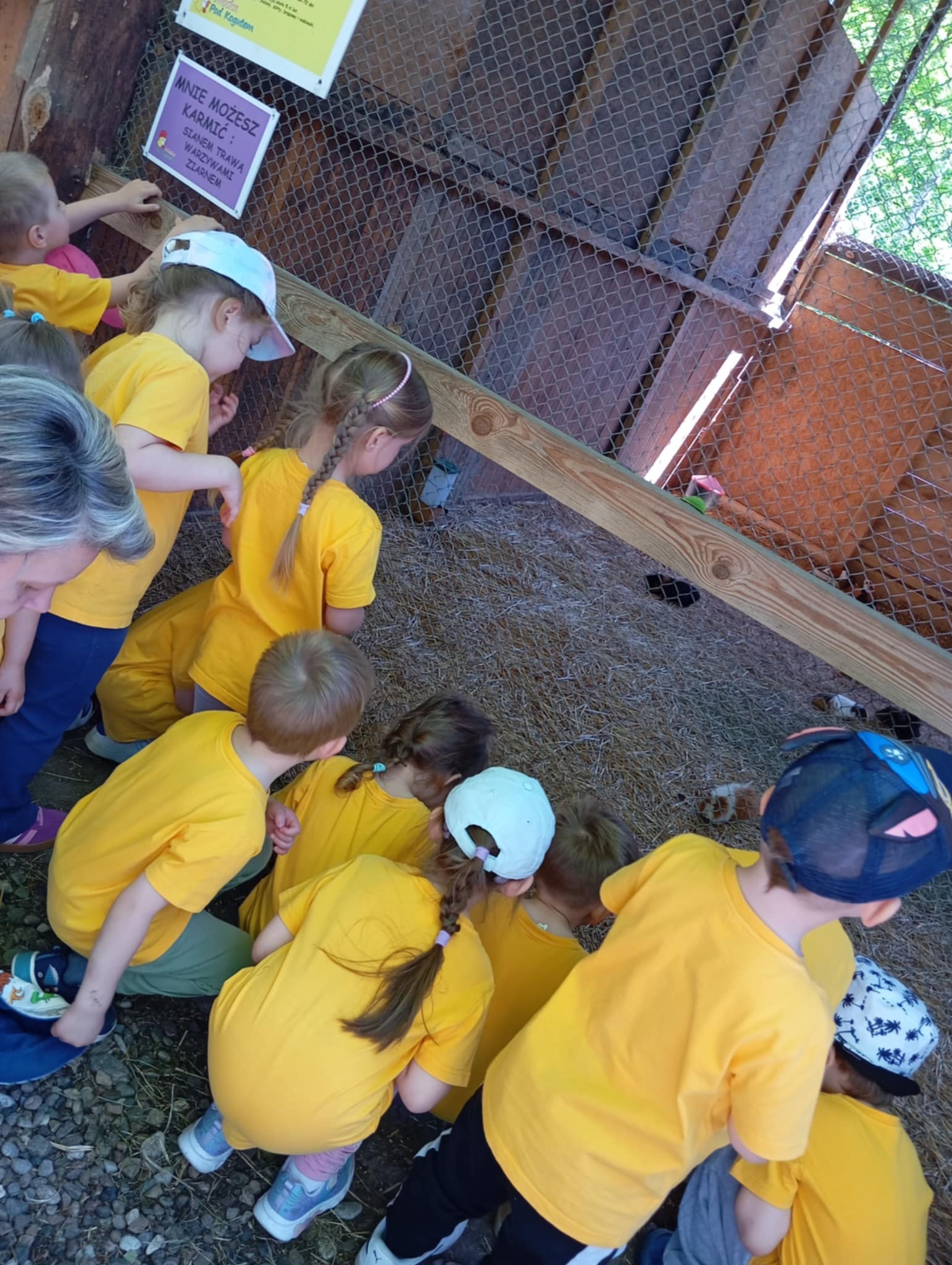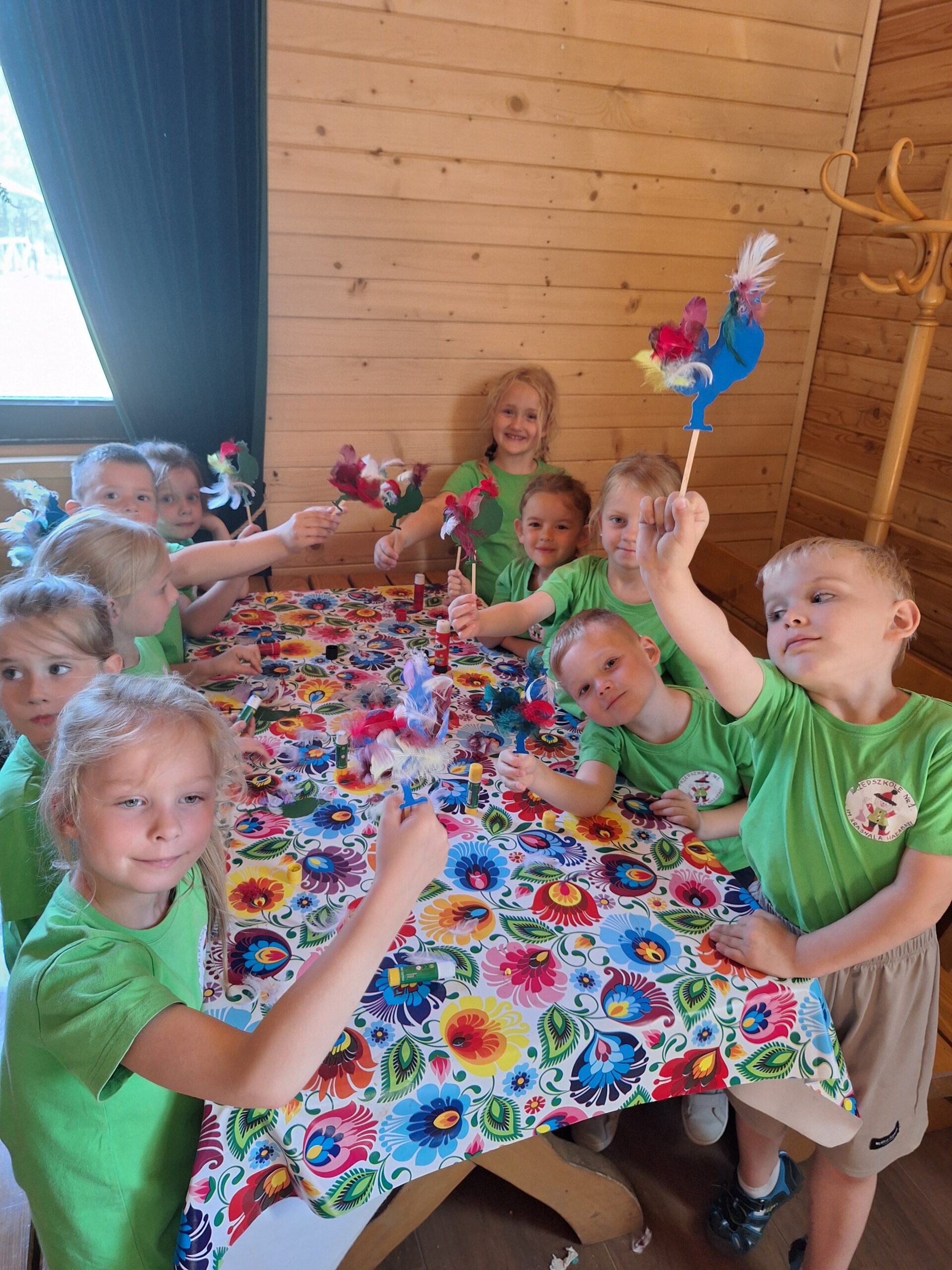 W dniu 27.05.2025r. dzieci odwiedziły “Wioskę pod kogutem” w miejscowości Krępe /koło Góry Kalwarii/ poznały różne odmiany zwierząt domowych np.kury rasy Jedwabiste, kury Brahma, koguty, świnki morskie, króliki, świnki czarne i białe. W pogodny dzień miło spędziły czas w nowym otoczeniu. Uczestniczyły również w Warsztatach, w których samodzielnie naklejały kogutom piórka, i takie kolorowe zabrały ze sobą do Grodziska .
