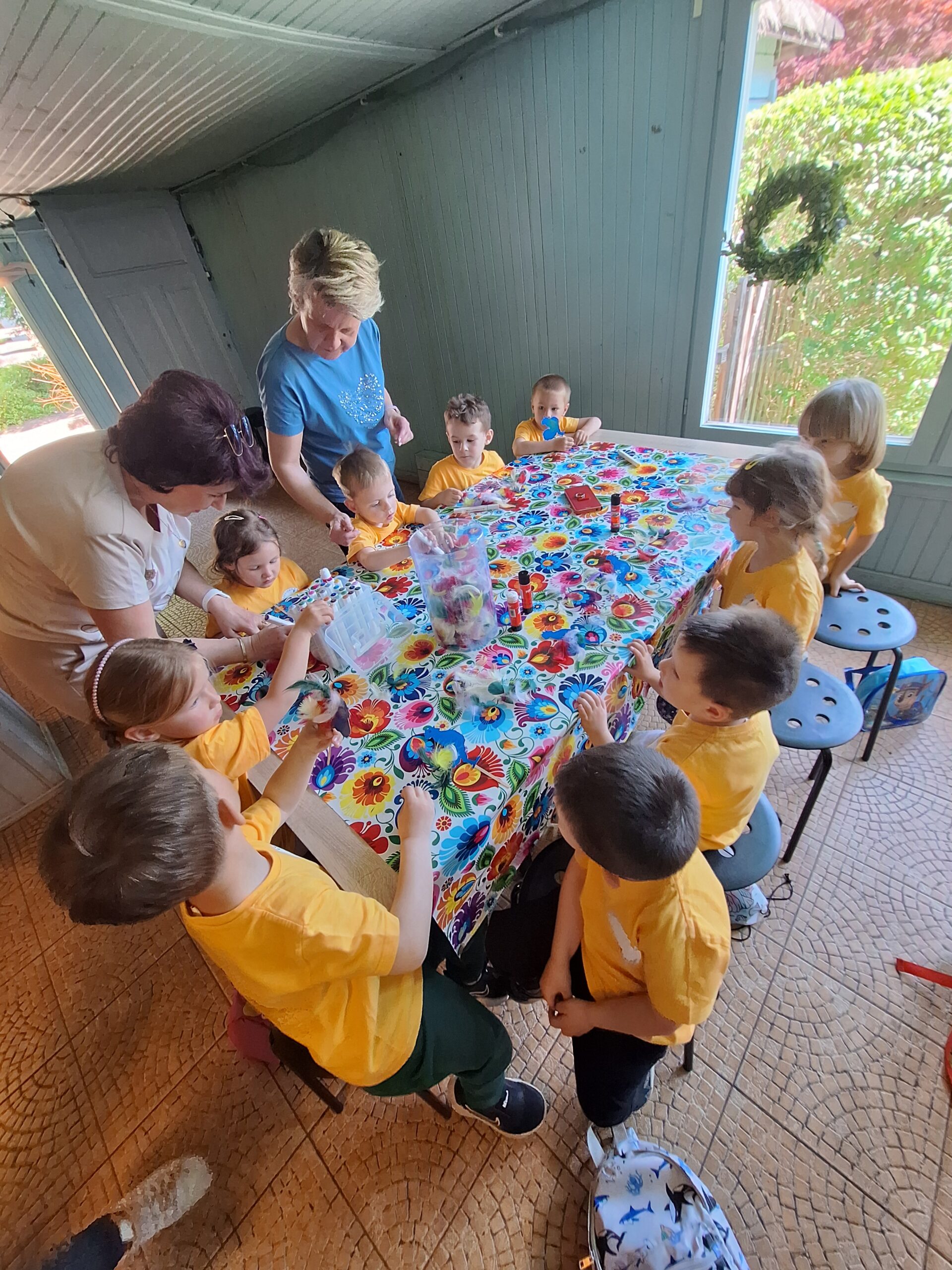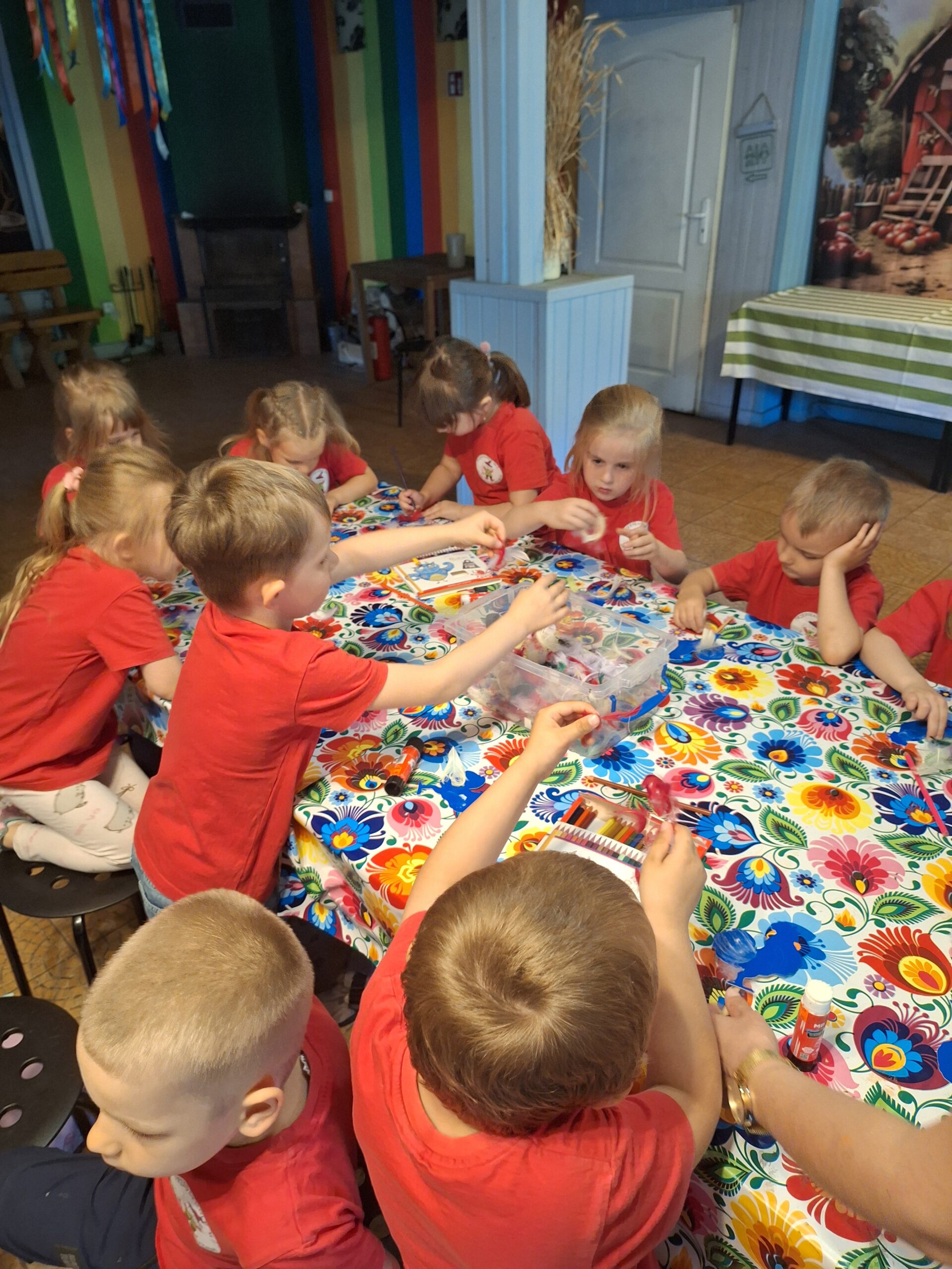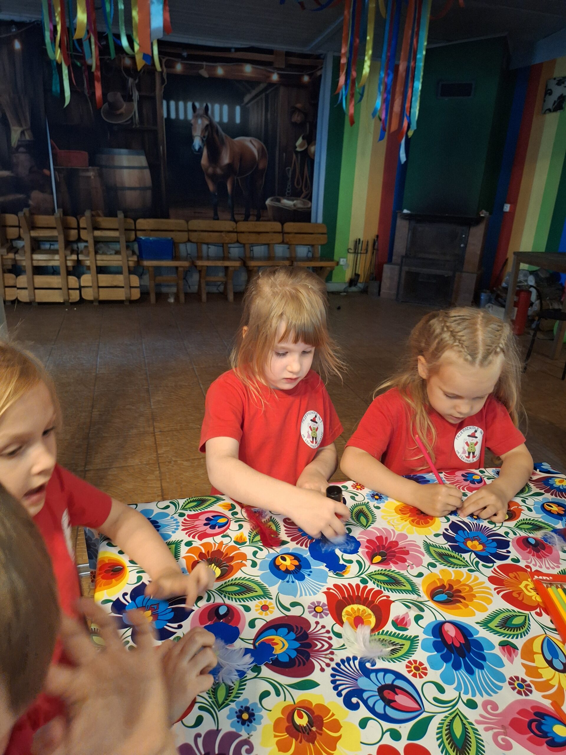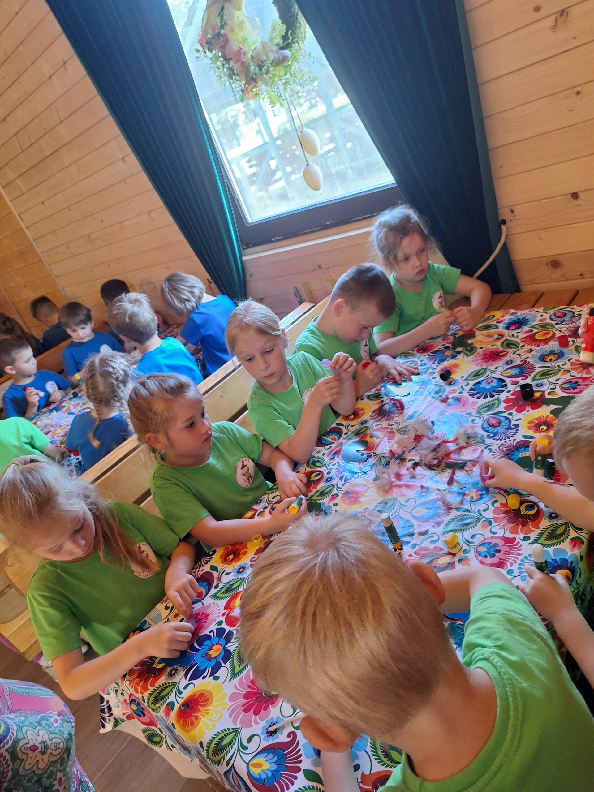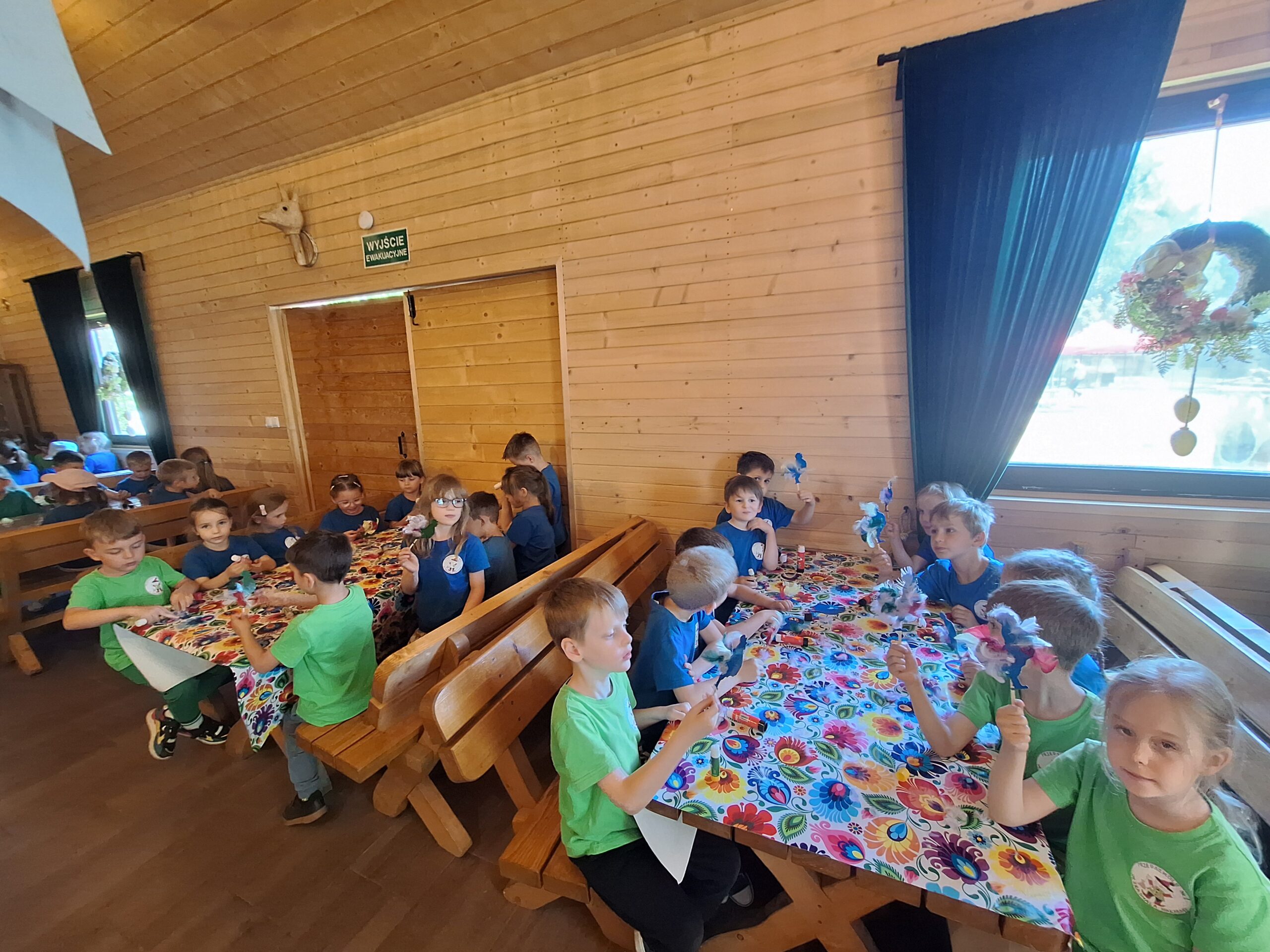 W dniu 27.05.2025r. dzieci odwiedziły “Wioskę pod kogutem” w miejscowości Krępe /koło Góry Kalwarii/ poznały różne odmiany zwierząt domowych np.kury rasy Jedwabiste, kury Brahma, koguty, świnki morskie, króliki, świnki czarne i białe. W pogodny dzień miło spędziły czas w nowym otoczeniu. Uczestniczyły również w Warsztatach, w których samodzielnie naklejały kogutom piórka, i takie kolorowe zabrały ze sobą do Grodziska .